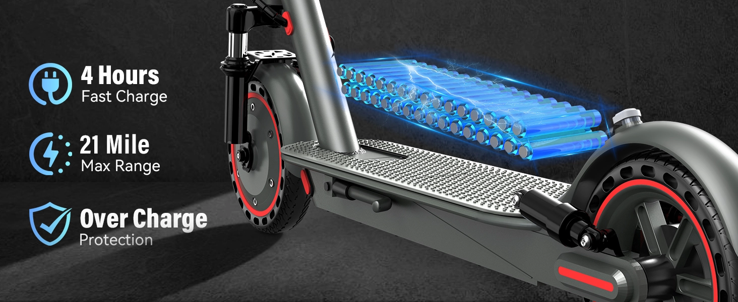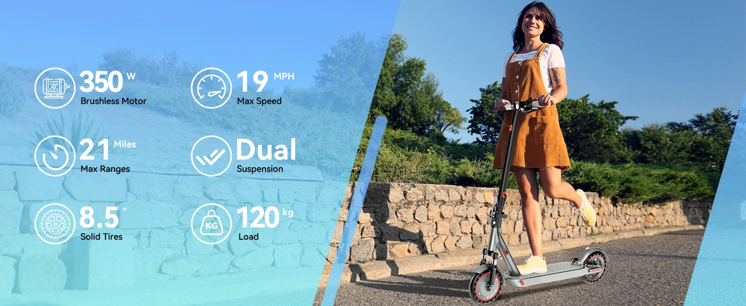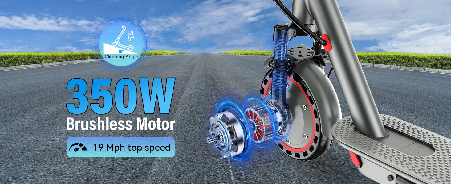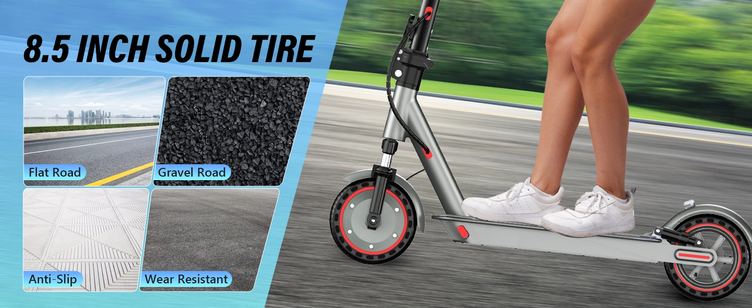 Equipado con 8.5-inch solid tires y front suspension, it effectively absorbs shocks from bumps while remaining maintenance-free. El 350motor W y 3610.5Ah / 7.8Ah battery provide sufficient power for daily commuting and short-distance travel.
