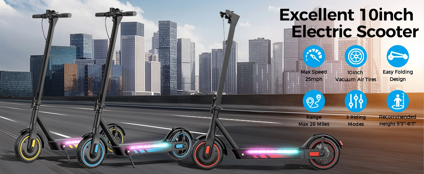 The scooter supports a maximum load of 120 kg and offers three speed modes with a top speed of 25–30 km/h. Its front-wheel drive ensures smooth acceleration, and the drum brake provides reliable stopping power.