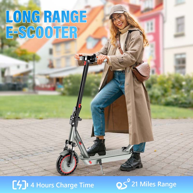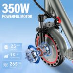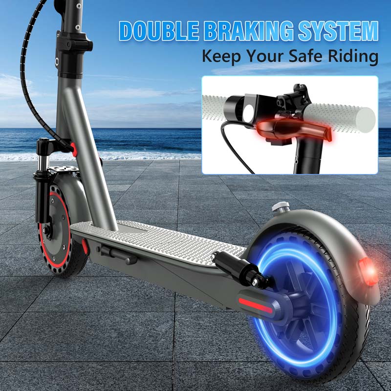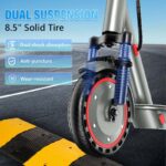 Equipped with 8.5-inch solid tires and front suspension, it effectively absorbs shocks from bumps while remaining maintenance-free. The 350W motor and 36V 10.5Ah / 7.8Ah battery provide sufficient power for daily commuting and short-distance travel.