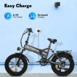 Powered by a 48V 15Ah lithium battery, the E20 offers a riding range of 35–50 km per charge, making it suitable for daily commuting as well as outdoor adventures. The dual suspension system effectively absorbs shocks, ensuring a smooth and comfortable ride even on rough roads.