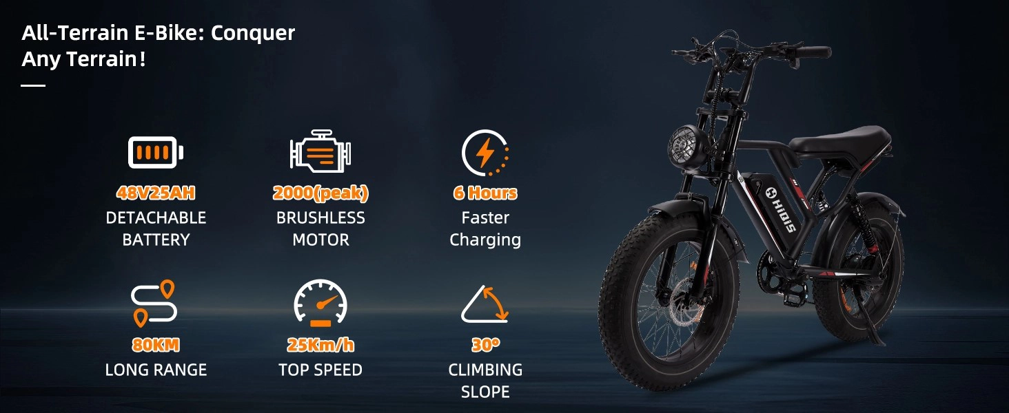 Designed for extreme performance and off-road capability, the S8-Dual electric bike features a powerful 2000W dual motor system with front and rear wheel drive, providing superior traction and climbing ability on sand, gravel, snow, and rough terrain.