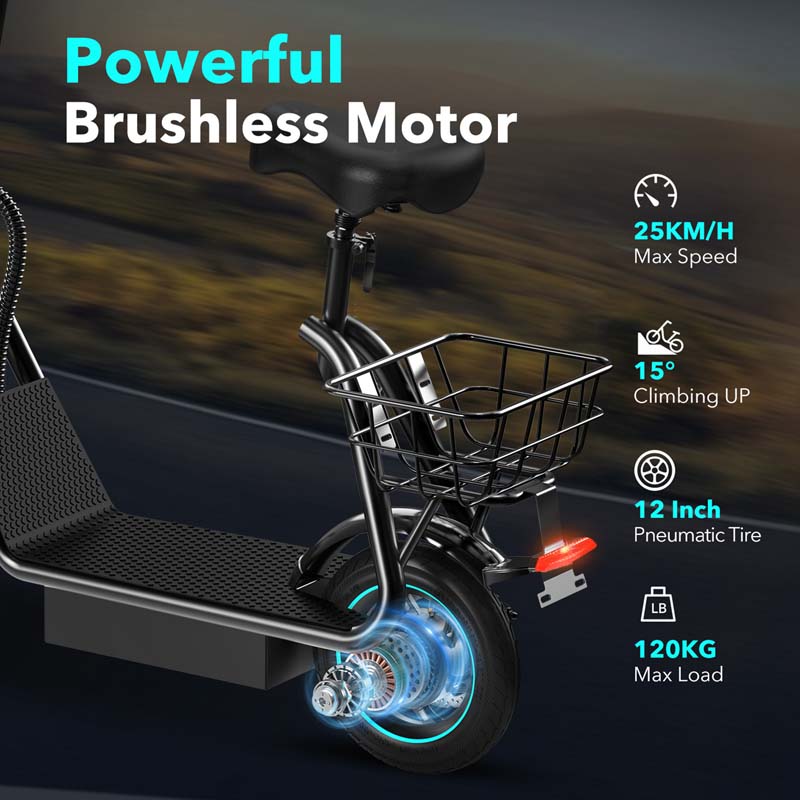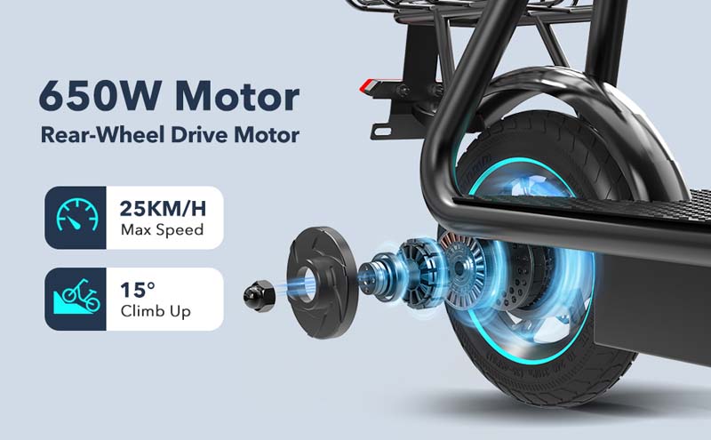 The rear-wheel drive system ensures responsive acceleration, and the drum brake provides dependable stopping power. Supporting a maximum load of 120 kg, it is suitable for a wide range of riders.