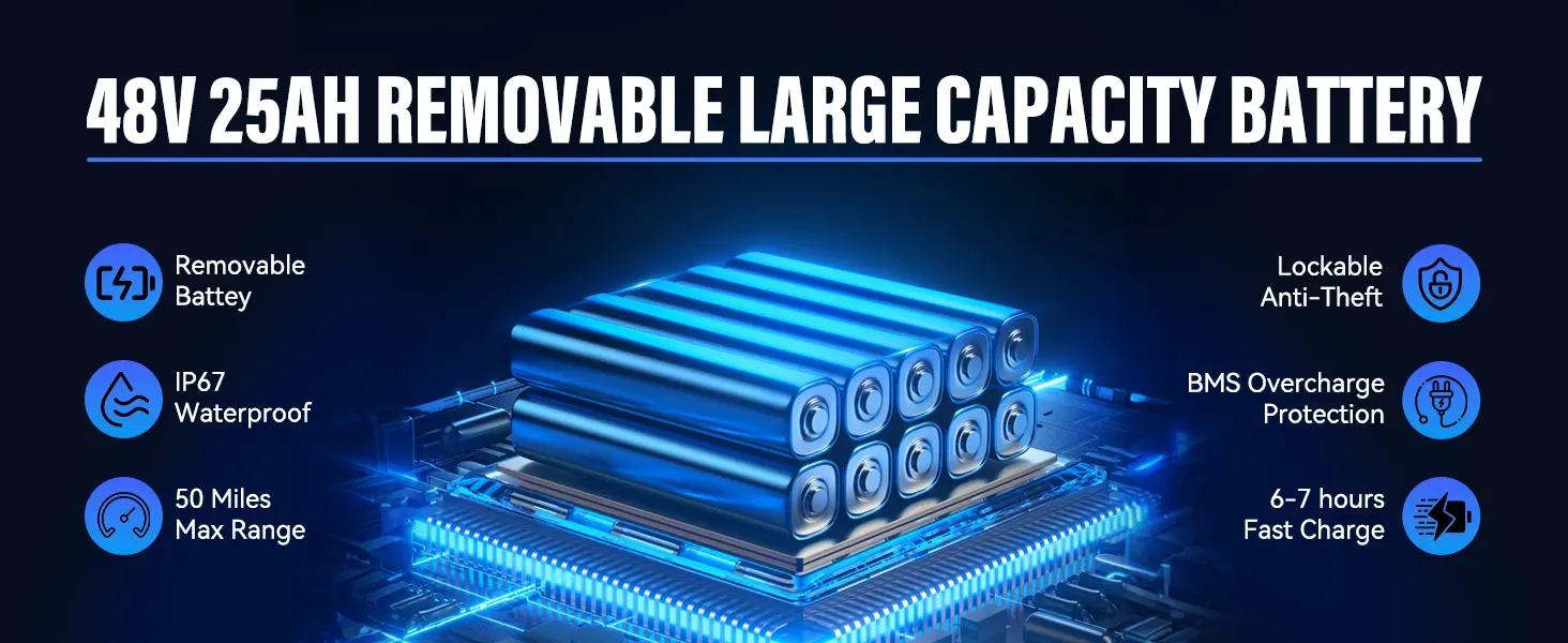 Powered by a high-capacity 48V 25Ah lithium battery, the WO18 offers a riding range of 50–60 km per charge and a top speed of up to 55 km/h, making it suitable for long-distance outdoor adventures and high-performance riding.