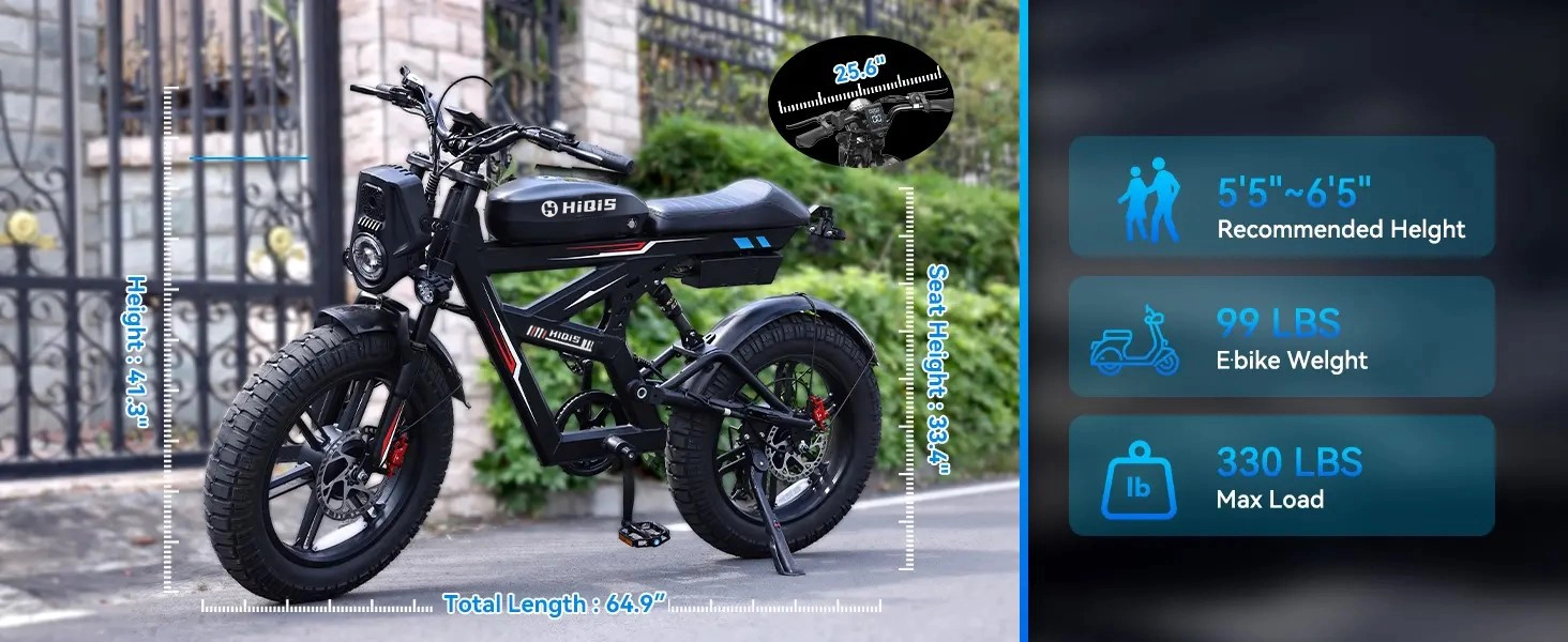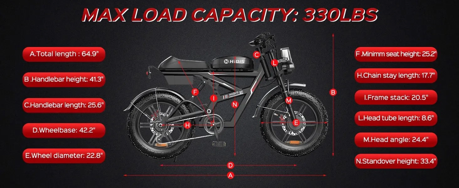 | Tire Size | 20 × 4.5 Inch Off-Road Fat Tire |